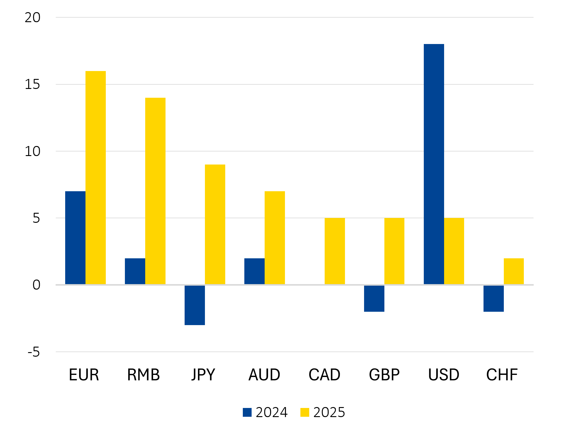 Figure 2: A net 16% of surveyed central banks plan to raise their euro holdings — the highest for any currency