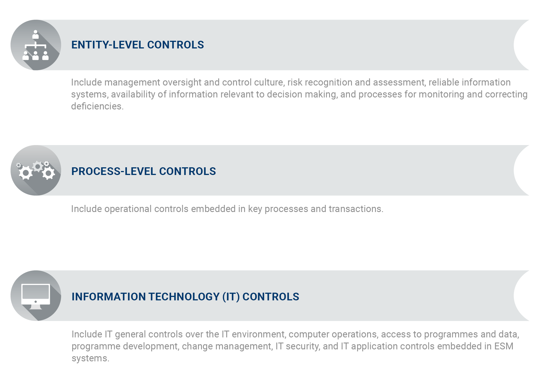 The ESM applies the following categories of internal controls: