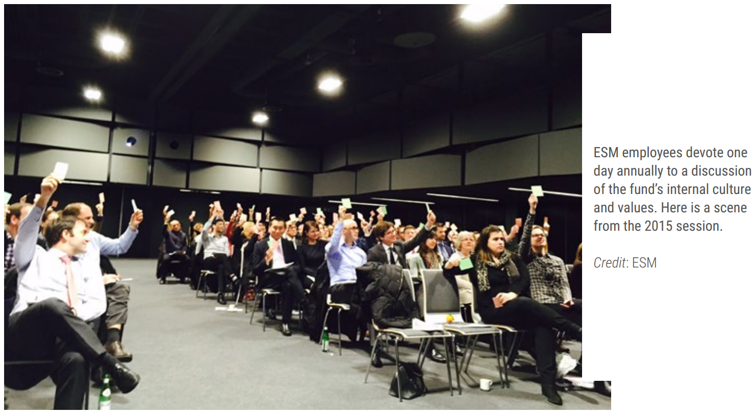 As the temporary fund prepared in 2012 to evolve into its permanent form, the ESM faced the same challenges as a start-up in the private sector: how to retain the nimble, entrepreneurial spirit of the early days while providing structure, and a career path and positive working environment for the professional staff.