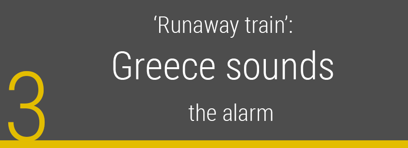 The Commission began to lay the groundwork for a collective solution, without knowing where it would lead. In December 2009, planning began on a potential rescue package for Greece, whose fiscal deficit kept getting revised upwards – ‘it exploded three times in three months,’ said Olli Rehn, former European commissioner for economic and monetary affairs and the euro. These aid preparations continued through the Christmas break and into January. Instead of the planned 3.7% deficit for 2009, Eurostat put the fiscal deficit at 13.6% in its April 2010 report[11], making one further final upward revision to 15.4% that November[12].